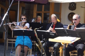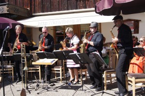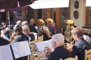 Der Bergwelt entsprechend putzten sich unsere Musikantinnen heraus und traten im feschen Dirndl auf. Sie brachten auch optisch Farbe ins Konzert.
