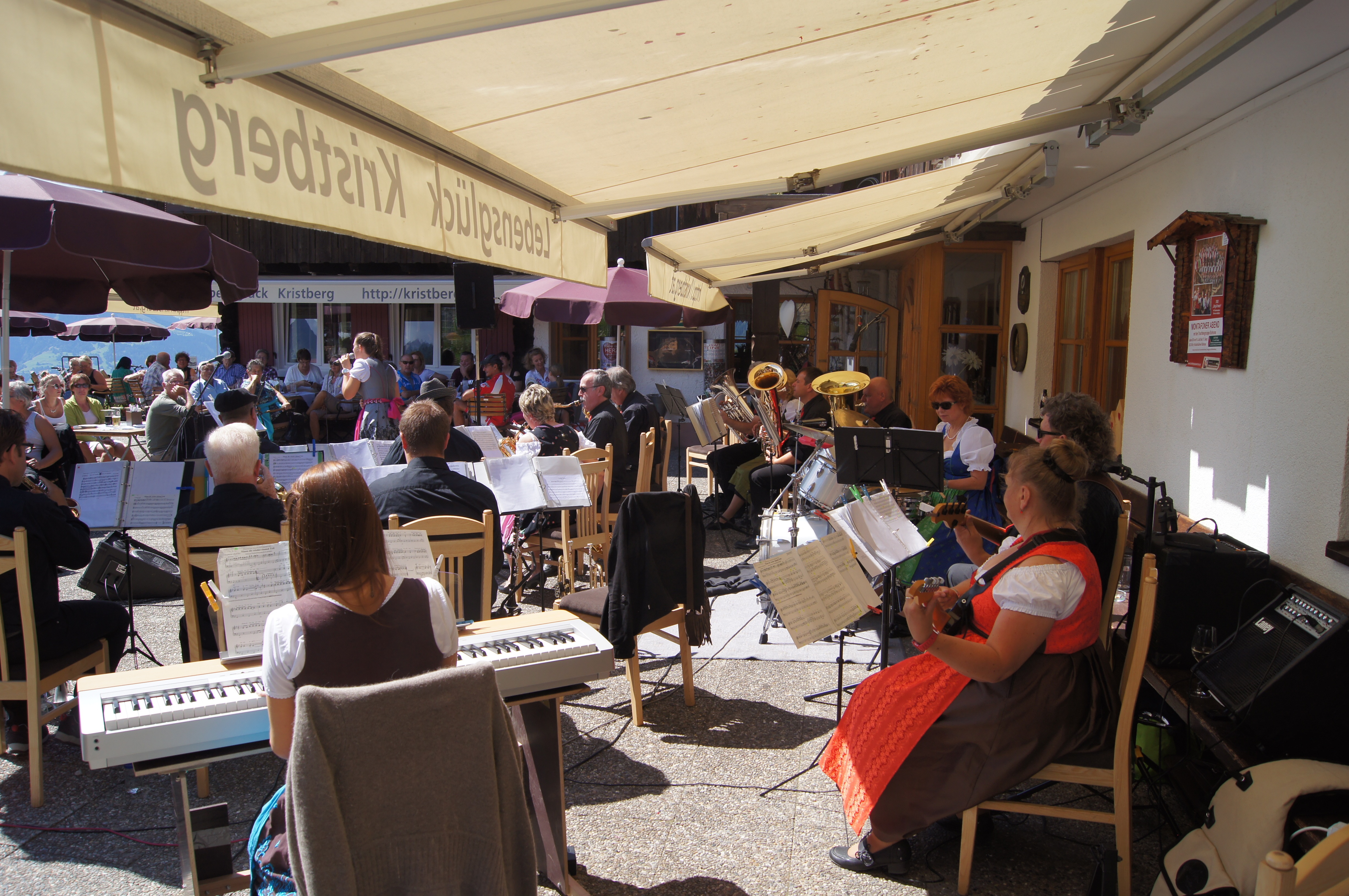 Vor einer einmaligen Bergkulisse durften wir die Gäste im Panoramagasthof Kristberg bei perfektem Bergwetter musikalisch unterhalten.